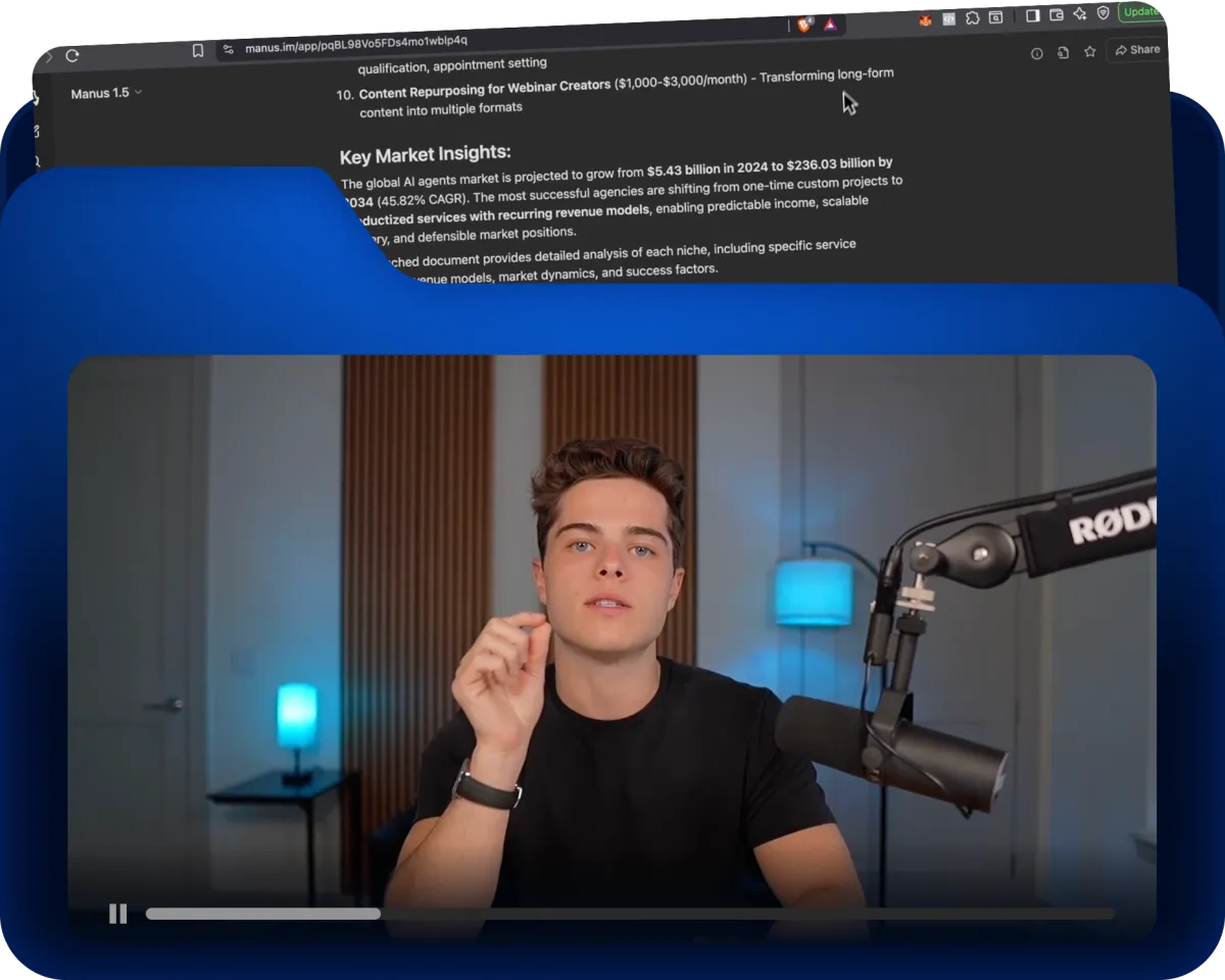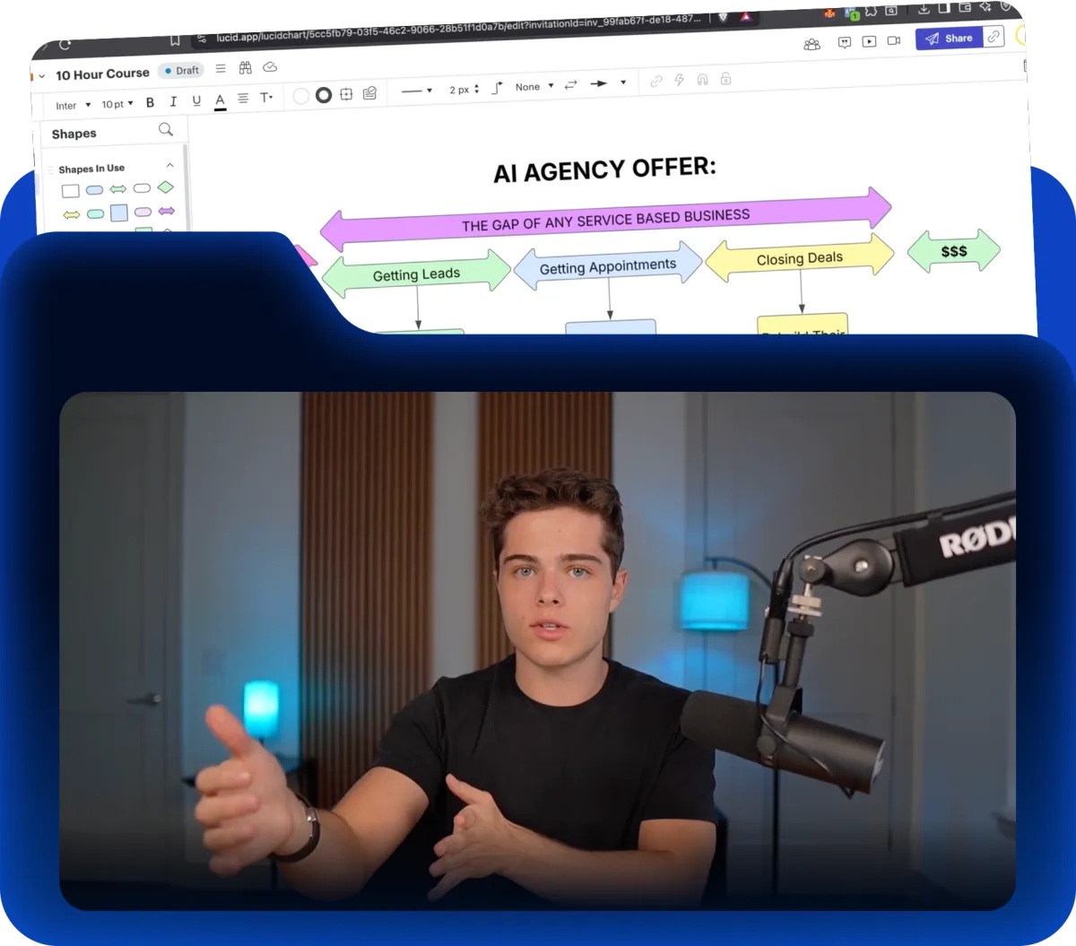 Step-by-step videos on setting up your AI agency, building client-ready systems, and landing your first $5k–$10k contracts without needing any tech experience.